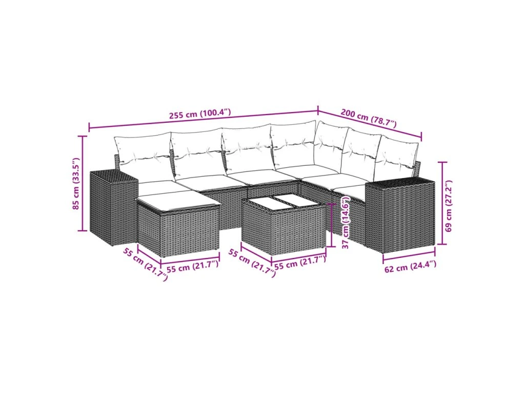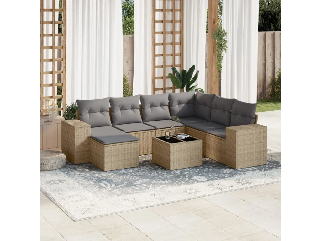 8dílná zahradní sedací souprava s poduškami béžová polyratan 3222908