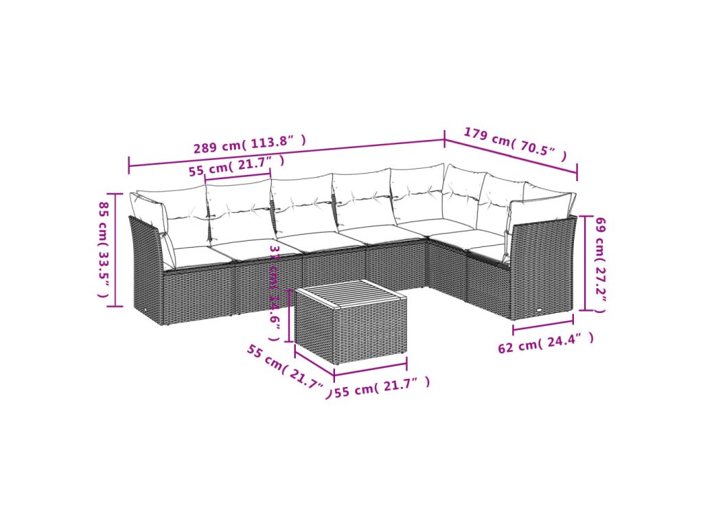Tato zahradní sedací souprava je dokonalým doplňkem vaší zahrady, terasy nebo dvorku a poskytne vám pohodlné a příjemné místo, kde si můžete povídat s rodinou a přáteli nebo jen tak odpočívat a užívat si pobyt venku.