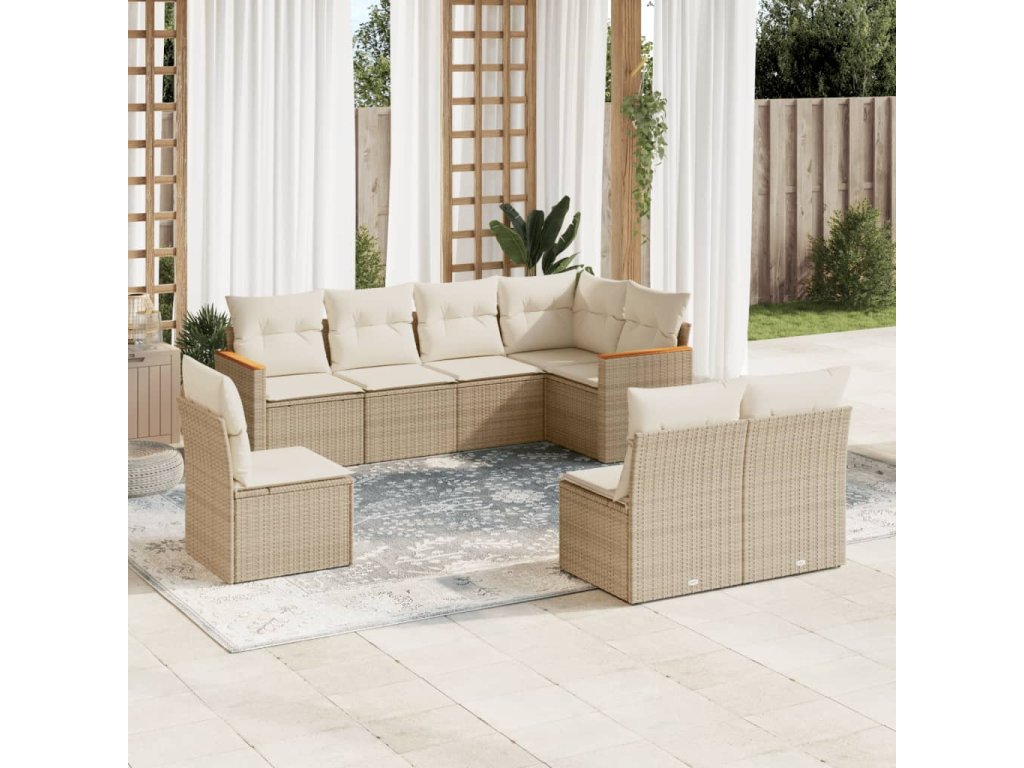 8dílná zahradní sedací souprava s poduškami béžová polyratan 3226044