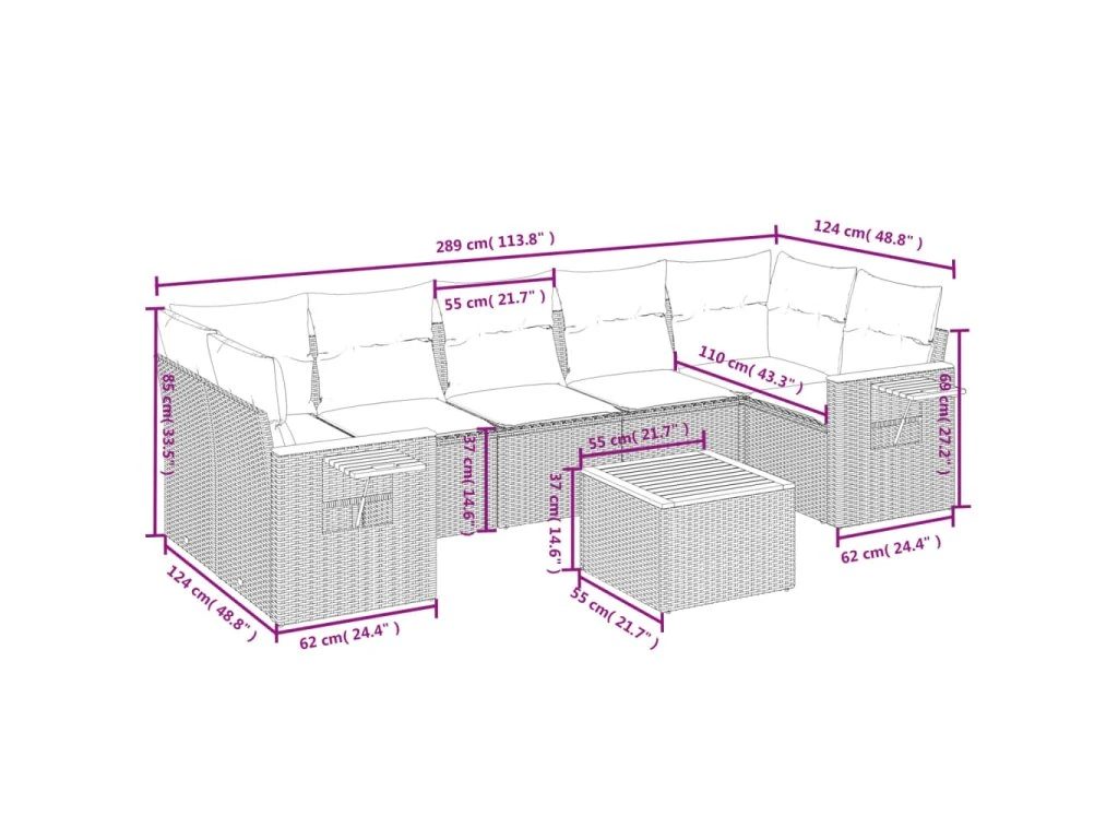 Tato zahradní sedací souprava je dokonalým doplňkem vaší zahrady, terasy nebo dvorku a poskytne vám pohodlné a příjemné místo, kde si můžete povídat s rodinou a přáteli nebo jen tak odpočívat a užívat si pobyt venku.