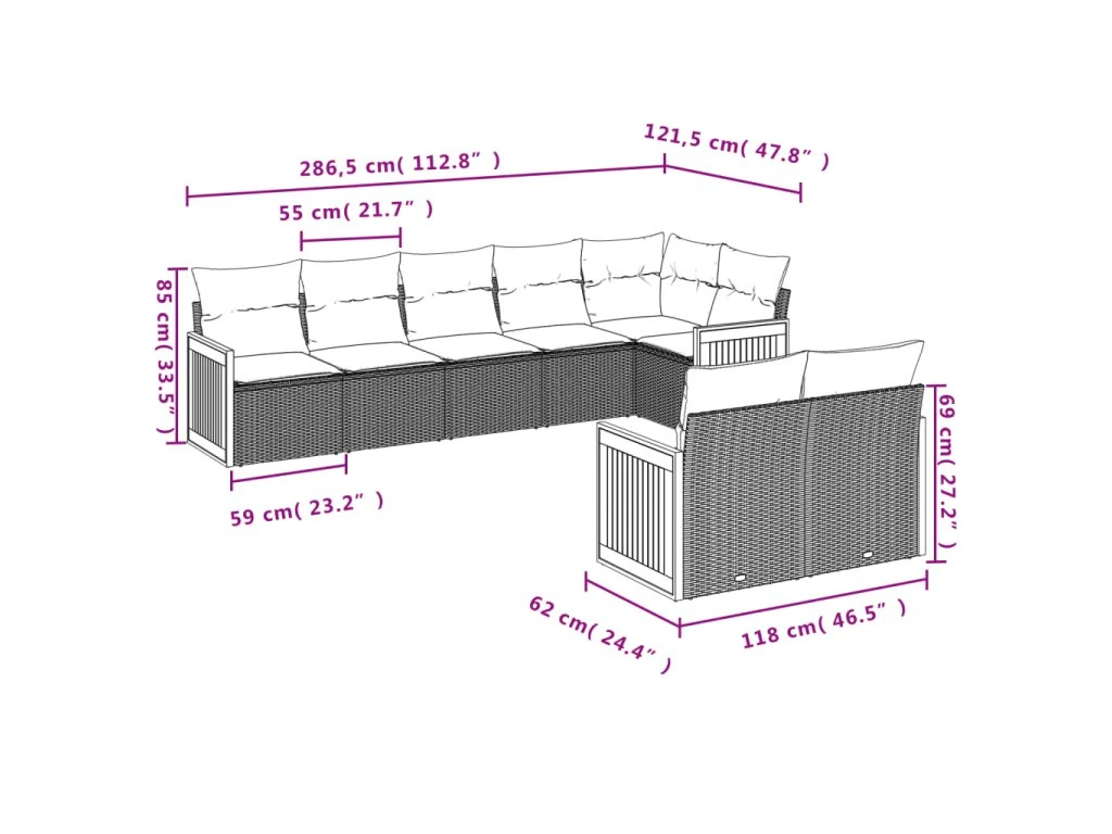 - Modulární design: Tato sada venkovního nábytku se vyznačuje modulární konstrukcí, je tedy zcela flexibilní a lze ji snadno přemisťovat, takže si můžete uspořádat venkovní nábytek dle vašich potřeb.
