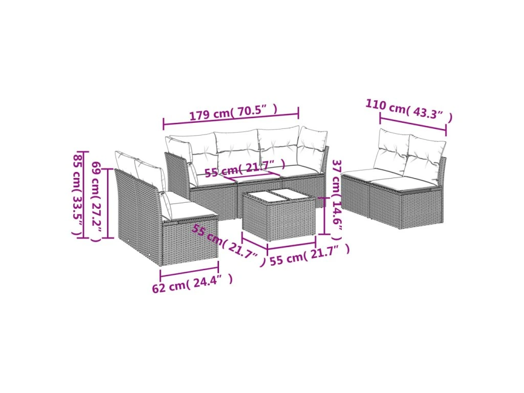 8dílná zahradní sedací souprava s poduškami béžová polyratan 3249258