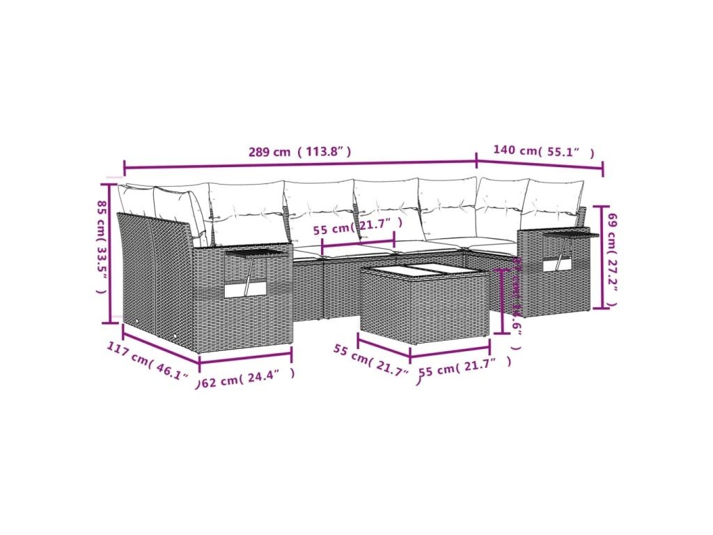 Tato zahradní sedací souprava je dokonalým doplňkem vaší zahrady, terasy nebo dvorku a poskytne vám pohodlné a příjemné místo, kde si můžete povídat s rodinou a přáteli nebo jen tak odpočívat a užívat si pobyt venku.