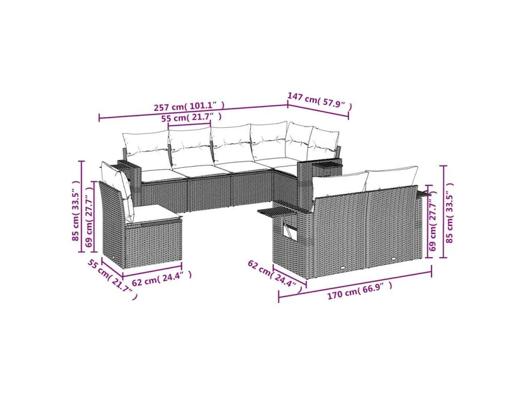 Tato zahradní sedací souprava je dokonalým doplňkem vaší zahrady, terasy nebo dvorku a poskytne vám pohodlné a příjemné místo, kde si můžete povídat s rodinou a přáteli nebo jen tak odpočívat a užívat si pobyt venku.