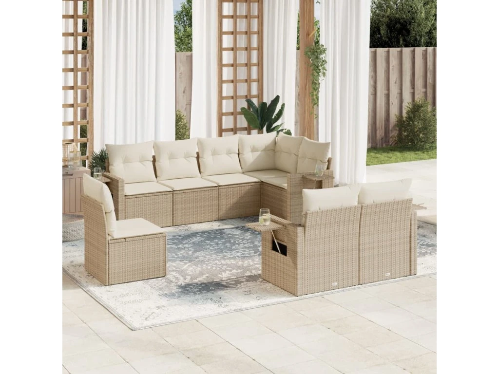 8dílná zahradní sedací souprava s poduškami béžová polyratan 3252775