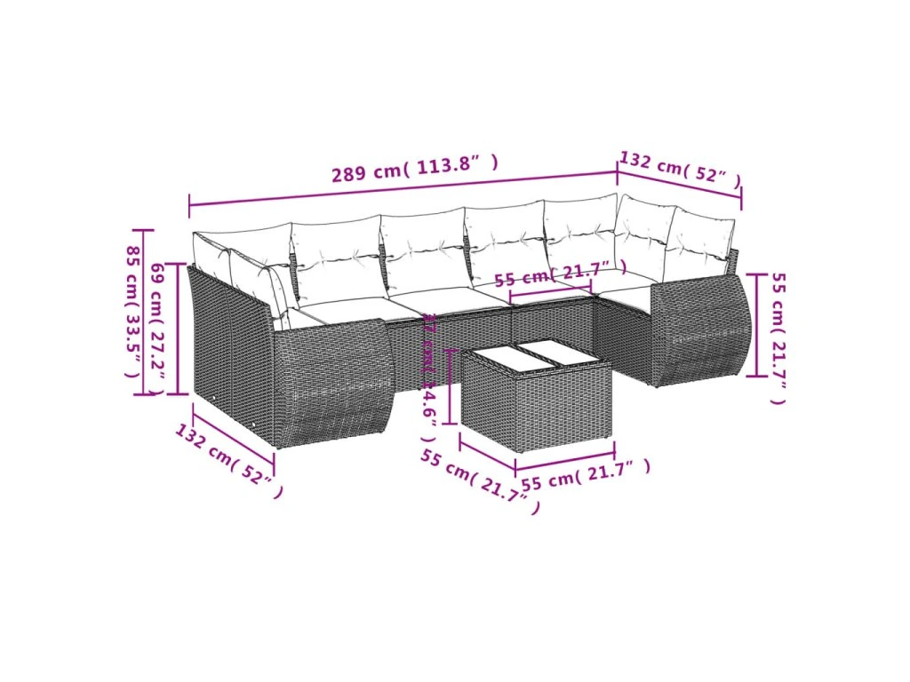 Tato zahradní sedací souprava je dokonalým doplňkem vaší zahrady, terasy nebo dvorku a poskytne vám pohodlné a příjemné místo, kde si můžete povídat s rodinou a přáteli nebo jen tak odpočívat a užívat si pobyt venku.