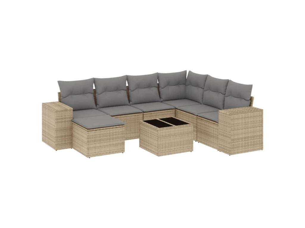 8dílná zahradní sedací souprava s poduškami béžová polyratan 3255246