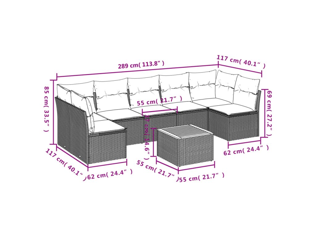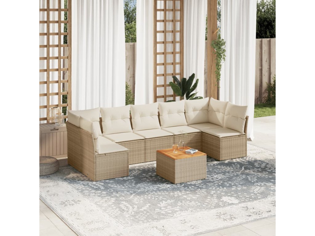 8dílná zahradní sedací souprava s poduškami béžová polyratan 3255904