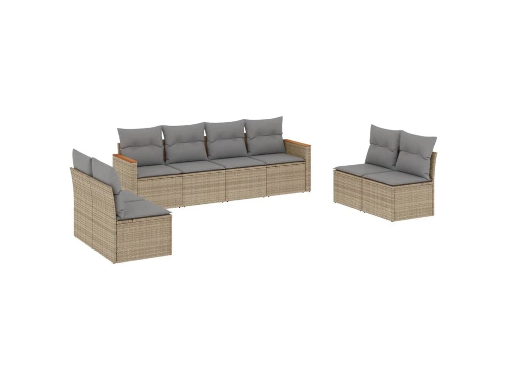8dílná zahradní sedací souprava s poduškami béžová polyratan 3258293