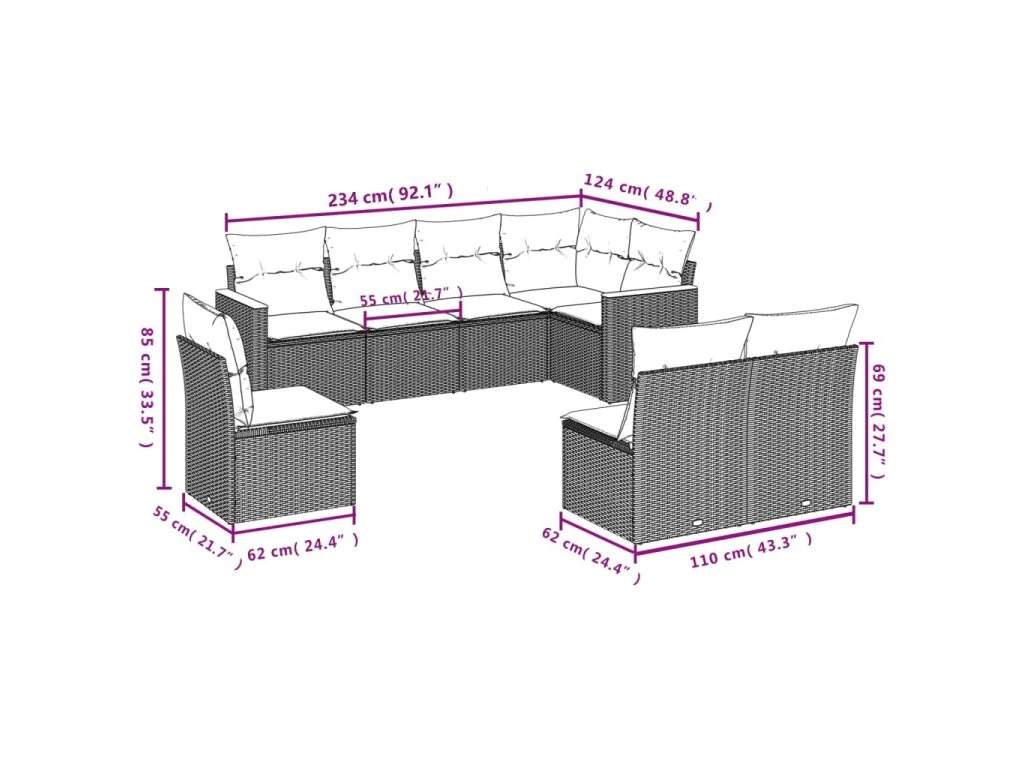 8dílná zahradní sedací souprava s poduškami béžová polyratan 3258446