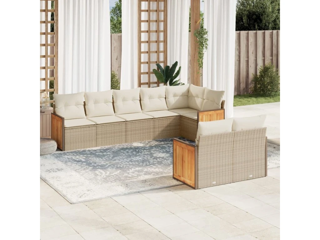 8dílná zahradní sedací souprava s poduškami béžová polyratan 3260231