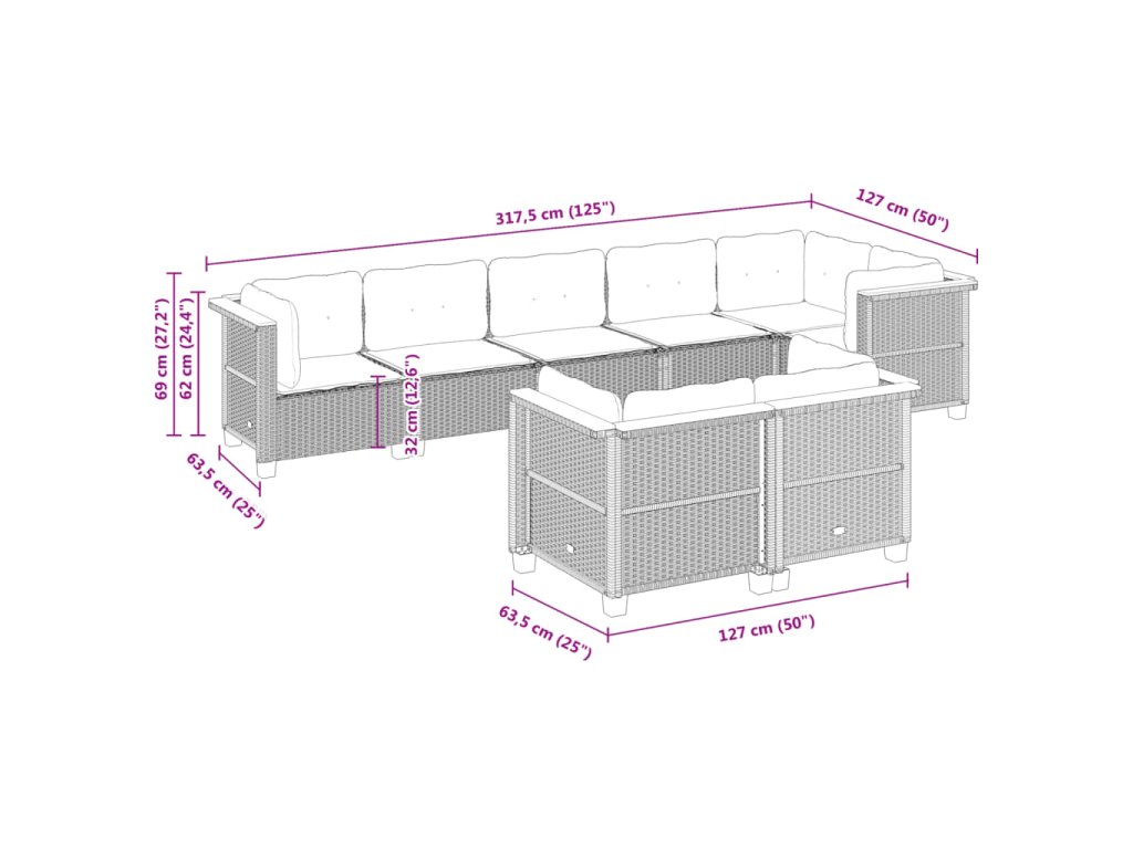 8dílná zahradní sedací souprava s poduškami béžová polyratan 3261889