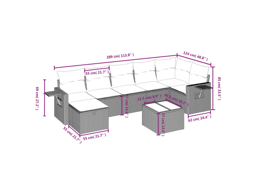 Tato zahradní sedací souprava je dokonalým doplňkem vaší zahrady, terasy nebo dvorku a poskytne vám pohodlné a příjemné místo, kde si můžete povídat s rodinou a přáteli nebo jen tak odpočívat a užívat si pobyt venku.
