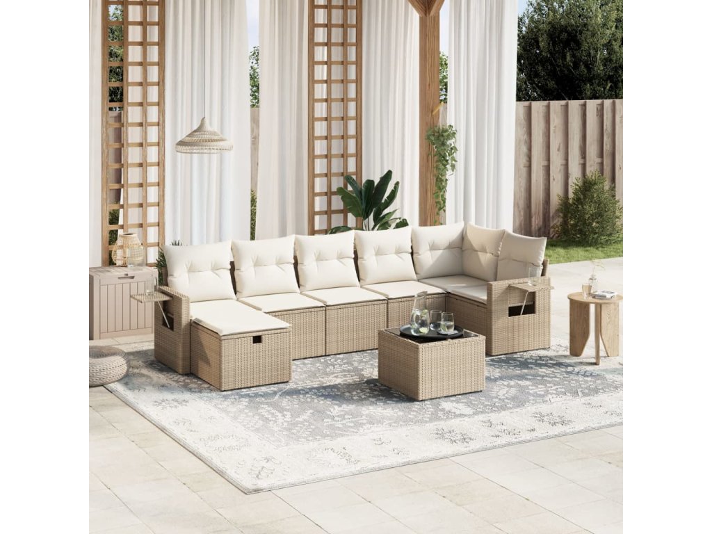 8dílná zahradní sedací souprava s poduškami béžová polyratan 3263824