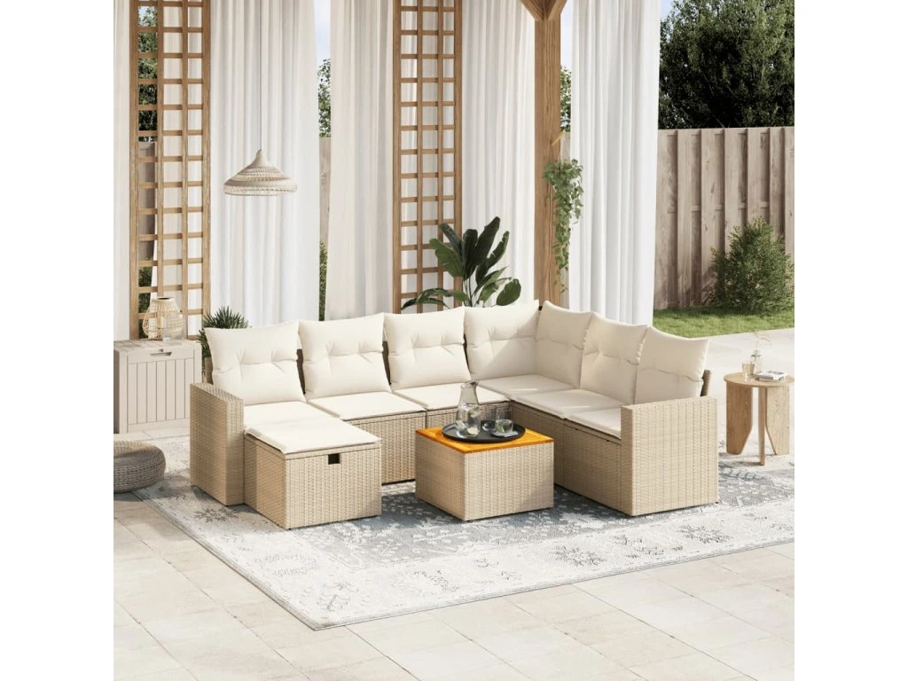 8dílná zahradní sedací souprava s poduškami béžová polyratan 3264852