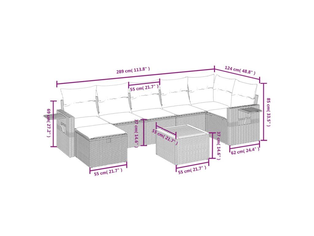 Tato zahradní sedací souprava je dokonalým doplňkem vaší zahrady, terasy nebo dvorku a poskytne vám pohodlné a příjemné místo, kde si můžete povídat s rodinou a přáteli nebo jen tak odpočívat a užívat si pobyt venku.
