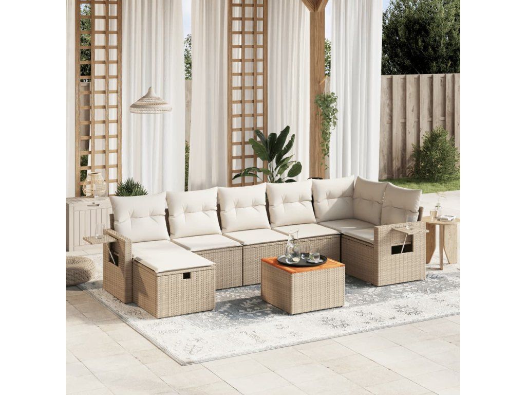 8dílná zahradní sedací souprava s poduškami béžová polyratan 3264957