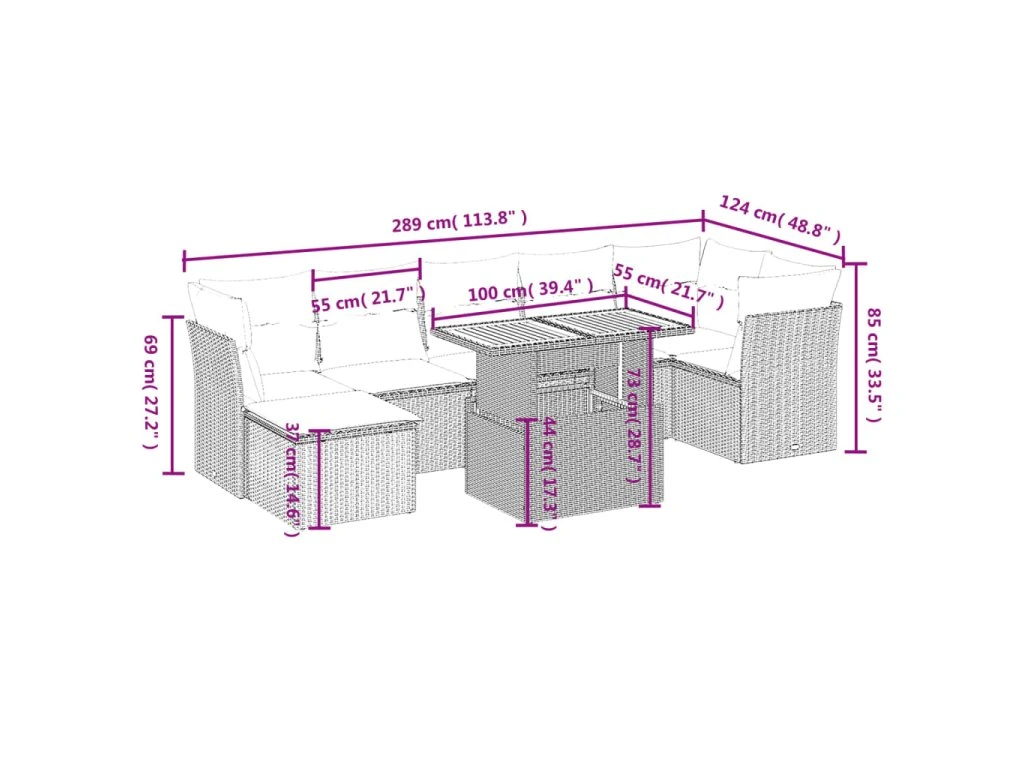 Tato zahradní sedací souprava je dokonalým doplňkem vaší zahrady, terasy nebo dvorku a poskytne vám pohodlné a příjemné místo, kde si můžete povídat s rodinou a přáteli nebo jen tak odpočívat a užívat si pobyt venku.
