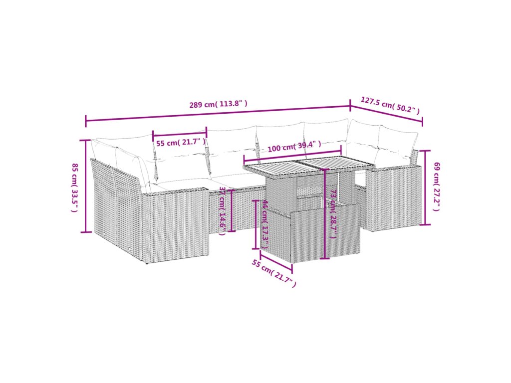 8dílná zahradní sedací souprava s poduškami béžová polyratan 3271227