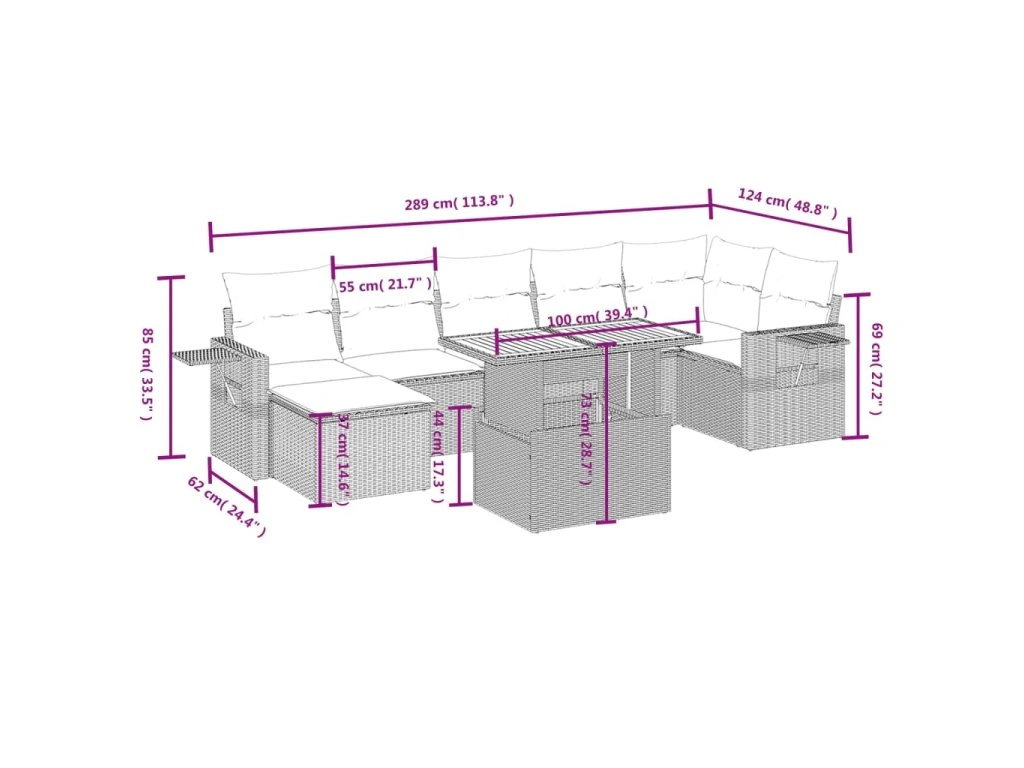 Tato zahradní sedací souprava je dokonalým doplňkem vaší zahrady, terasy nebo dvorku a poskytne vám pohodlné a příjemné místo, kde si můžete povídat s rodinou a přáteli nebo jen tak odpočívat a užívat si pobyt venku.