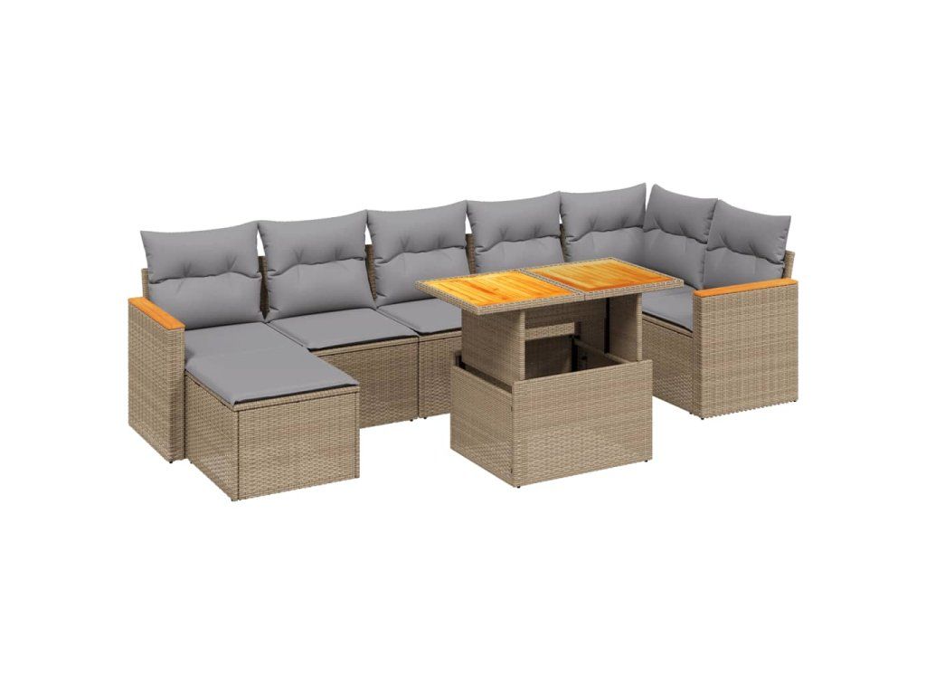 8dílná zahradní sedací souprava s poduškami béžová polyratan 3273187