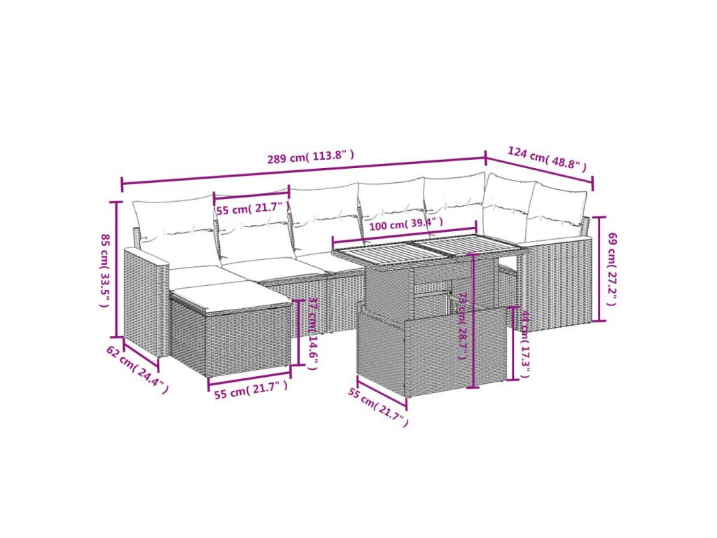 Tato zahradní sedací souprava je dokonalým doplňkem vaší zahrady, terasy nebo dvorku a poskytne vám pohodlné a příjemné místo, kde si můžete povídat s rodinou a přáteli nebo jen tak odpočívat a užívat si pobyt venku.