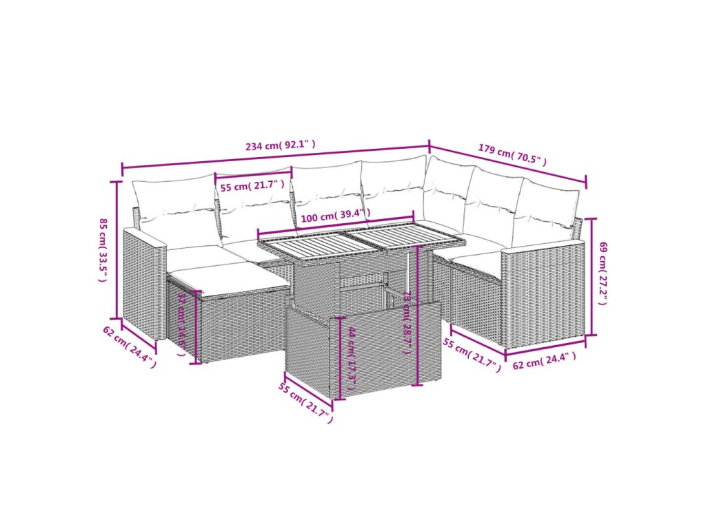 Tato zahradní sedací souprava je dokonalým doplňkem vaší zahrady, terasy nebo dvorku a poskytne vám pohodlné a příjemné místo, kde si můžete povídat s rodinou a přáteli nebo jen tak odpočívat a užívat si pobyt venku.