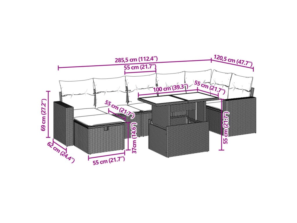 Tato zahradní sedací souprava je dokonalým doplňkem vaší zahrady, terasy nebo dvorku a poskytne vám pohodlné a příjemné místo, kde si můžete povídat s rodinou a přáteli nebo jen tak odpočívat a užívat si pobyt venku.
