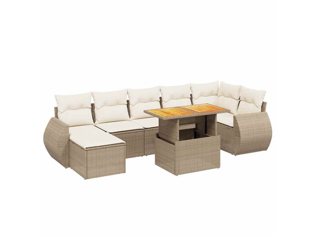 8dílná zahradní sedací souprava s poduškami béžová polyratan 3275823