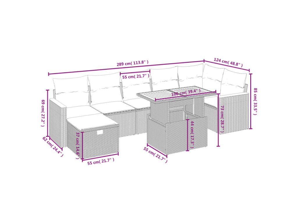 Tato zahradní sedací souprava je dokonalým doplňkem vaší zahrady, terasy nebo dvorku a poskytne vám pohodlné a příjemné místo, kde si můžete povídat s rodinou a přáteli nebo jen tak odpočívat a užívat si pobyt venku.