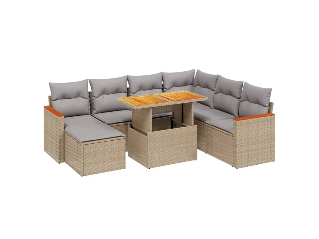 8dílná zahradní sedací souprava s poduškami béžová polyratan 3276055