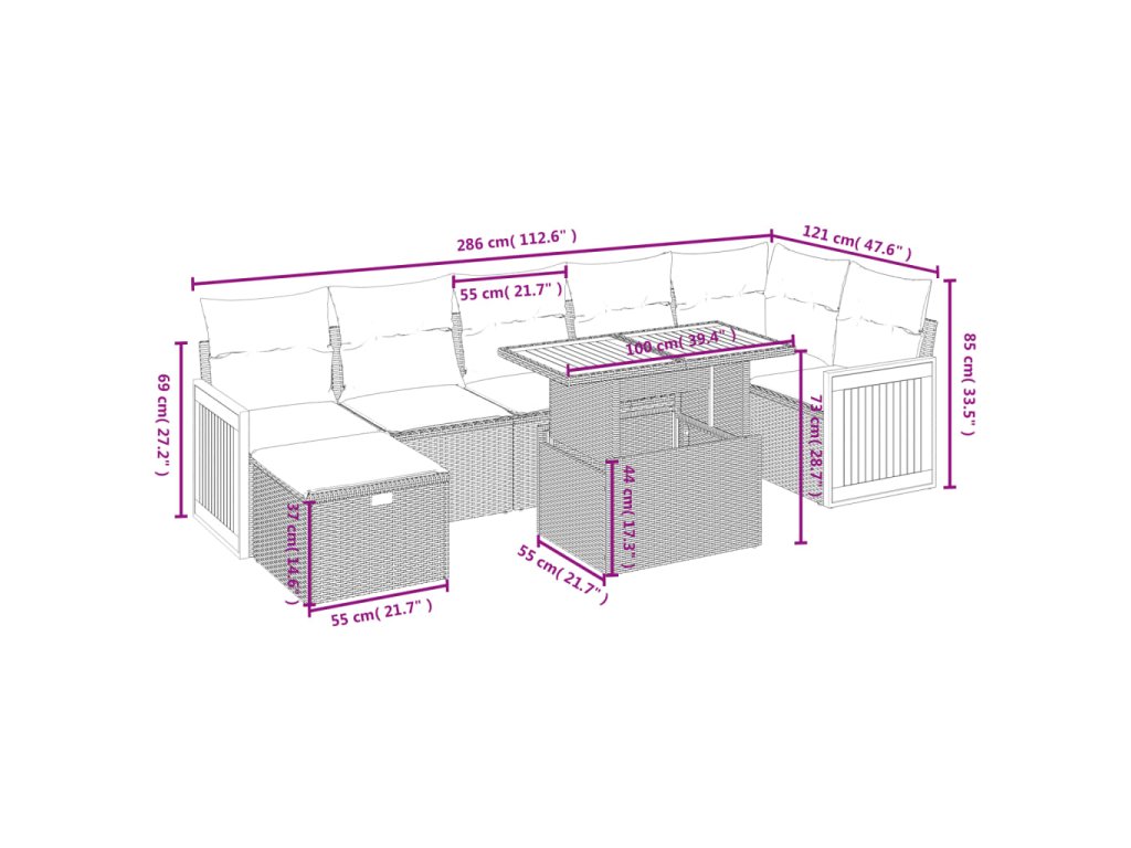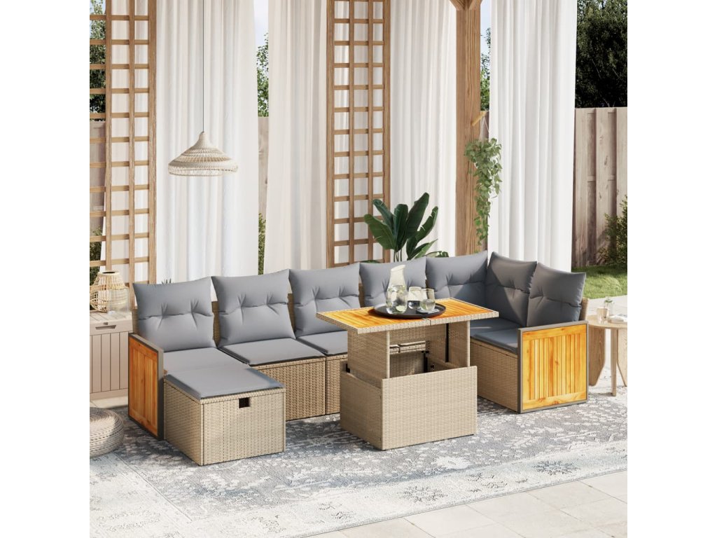 8dílná zahradní sedací souprava s poduškami béžová polyratan 3276258