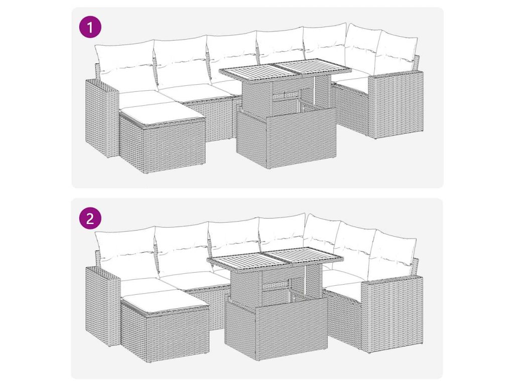 - Modulární design: Tato sada venkovního nábytku se vyznačuje modulární konstrukcí, je tedy zcela flexibilní a lze ji snadno přemisťovat, takže si můžete uspořádat venkovní nábytek dle vašich potřeb.