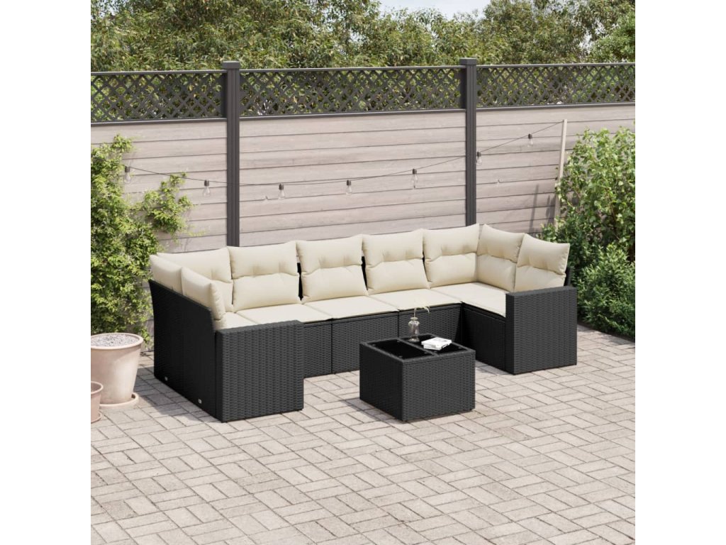 8dílná zahradní sedací souprava s poduškami černá polyratan 3218726