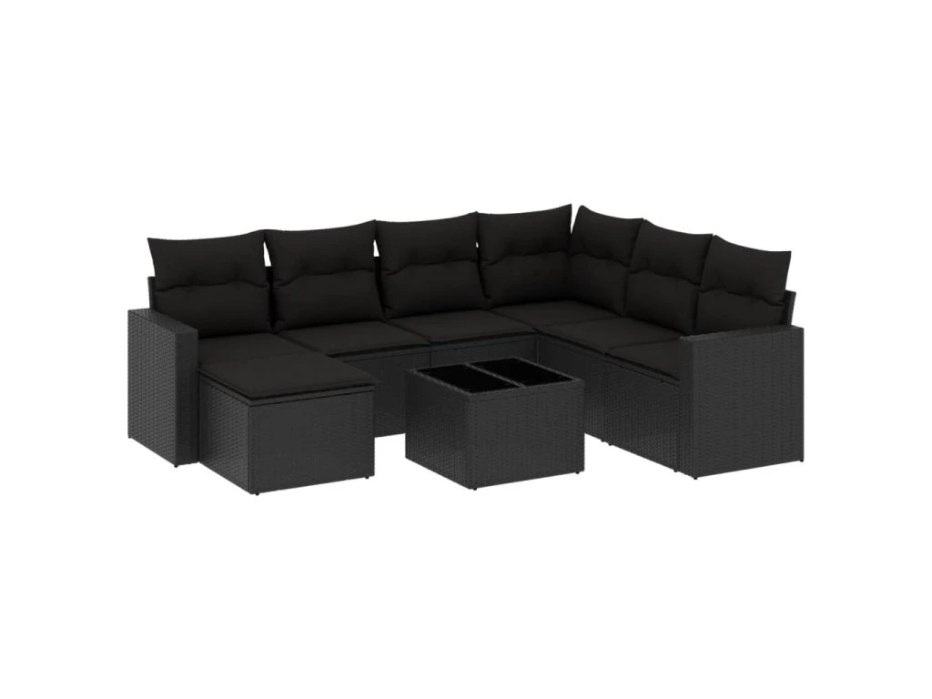 8dílná zahradní sedací souprava s poduškami černá polyratan 3219295