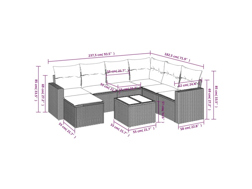 Tato zahradní sedací souprava je dokonalým doplňkem vaší zahrady, terasy nebo dvorku a poskytne vám pohodlné a příjemné místo, kde si můžete povídat s rodinou a přáteli nebo jen tak odpočívat a užívat si pobyt venku.