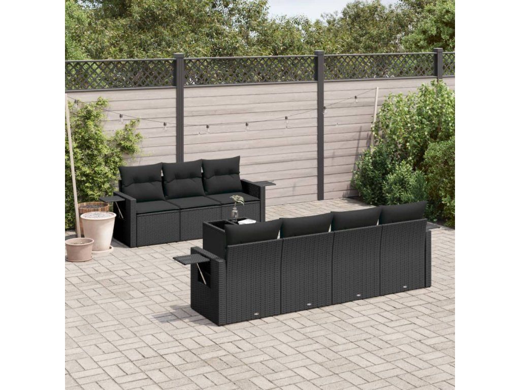 8dílná zahradní sedací souprava s poduškami černá polyratan 3219924
