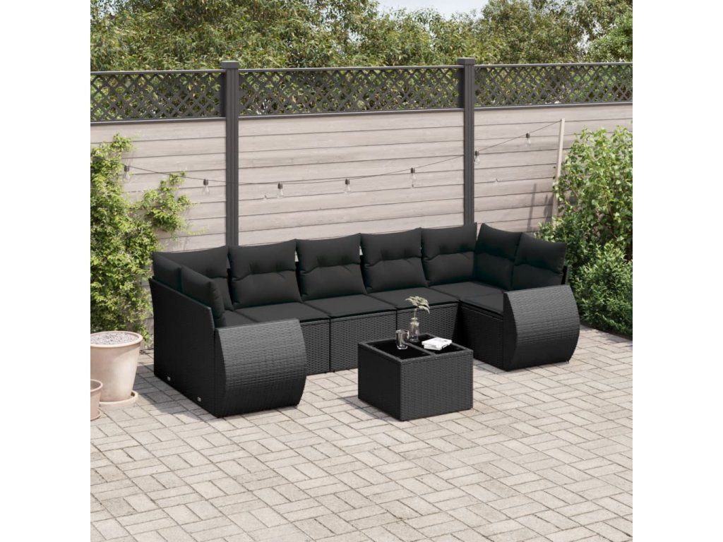 8dílná zahradní sedací souprava s poduškami černá polyratan 3221134