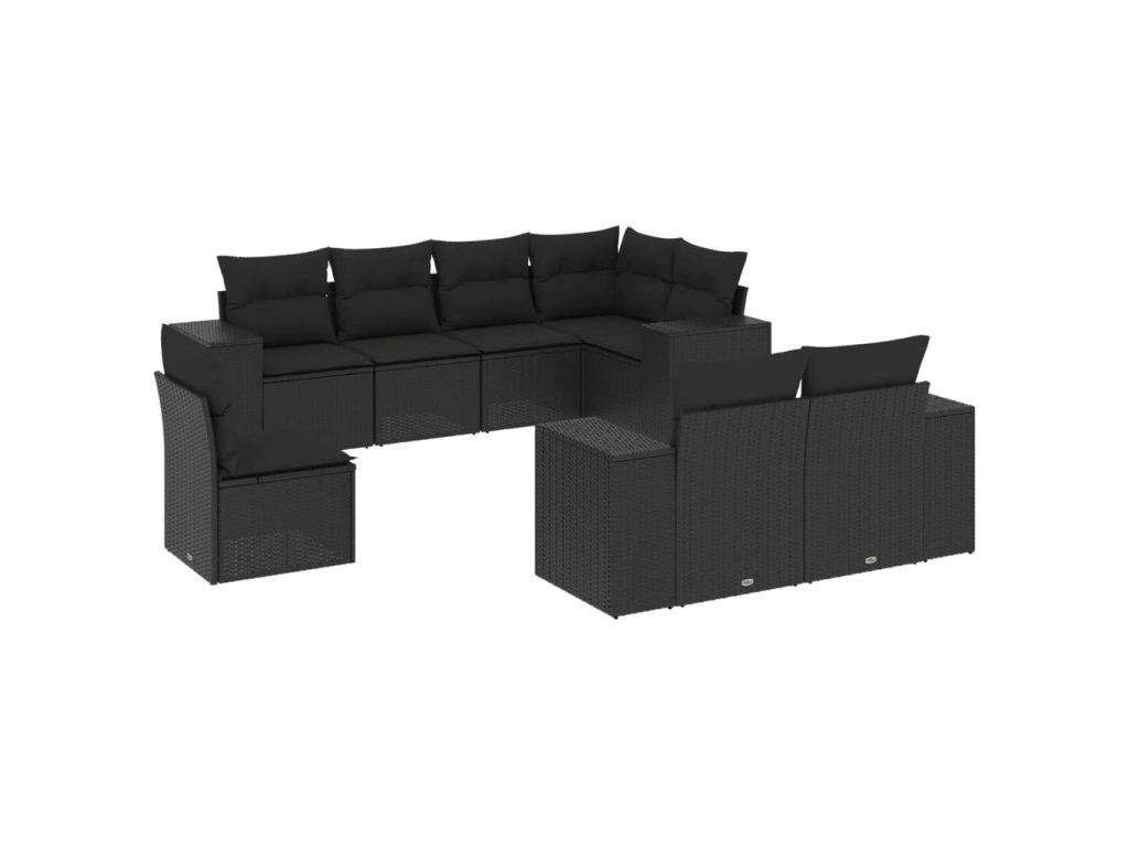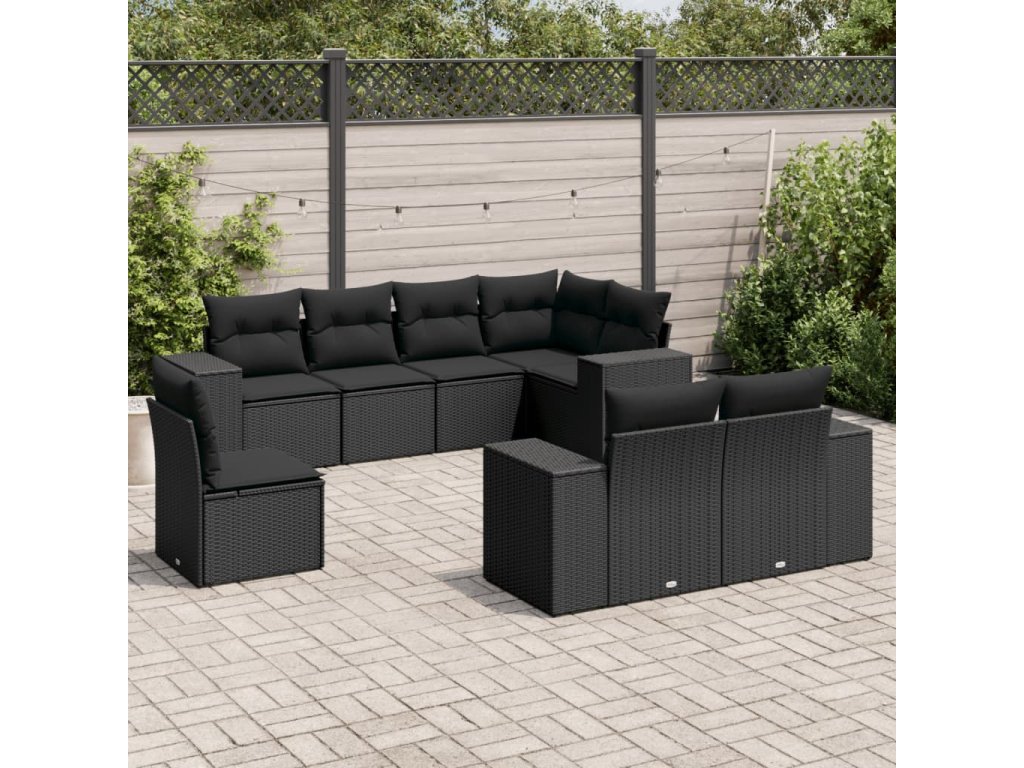 8dílná zahradní sedací souprava s poduškami černá polyratan 3222834
