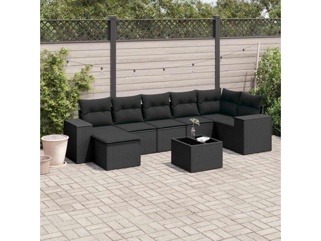 8dílná zahradní sedací souprava s poduškami černá polyratan 3222884