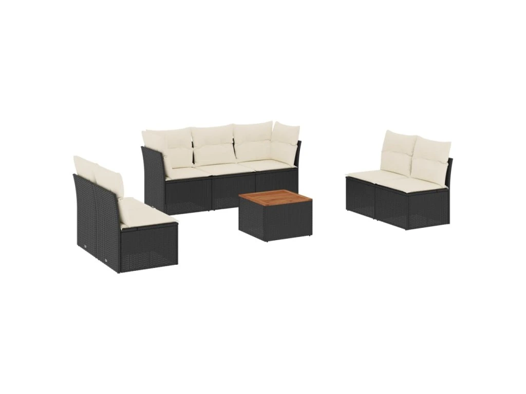 8dílná zahradní sedací souprava s poduškami černá polyratan 3223564