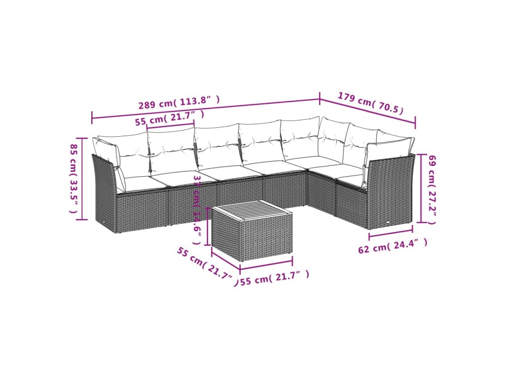 Tato zahradní sedací souprava je dokonalým doplňkem vaší zahrady, terasy nebo dvorku a poskytne vám pohodlné a příjemné místo, kde si můžete povídat s rodinou a přáteli nebo jen tak odpočívat a užívat si pobyt venku.