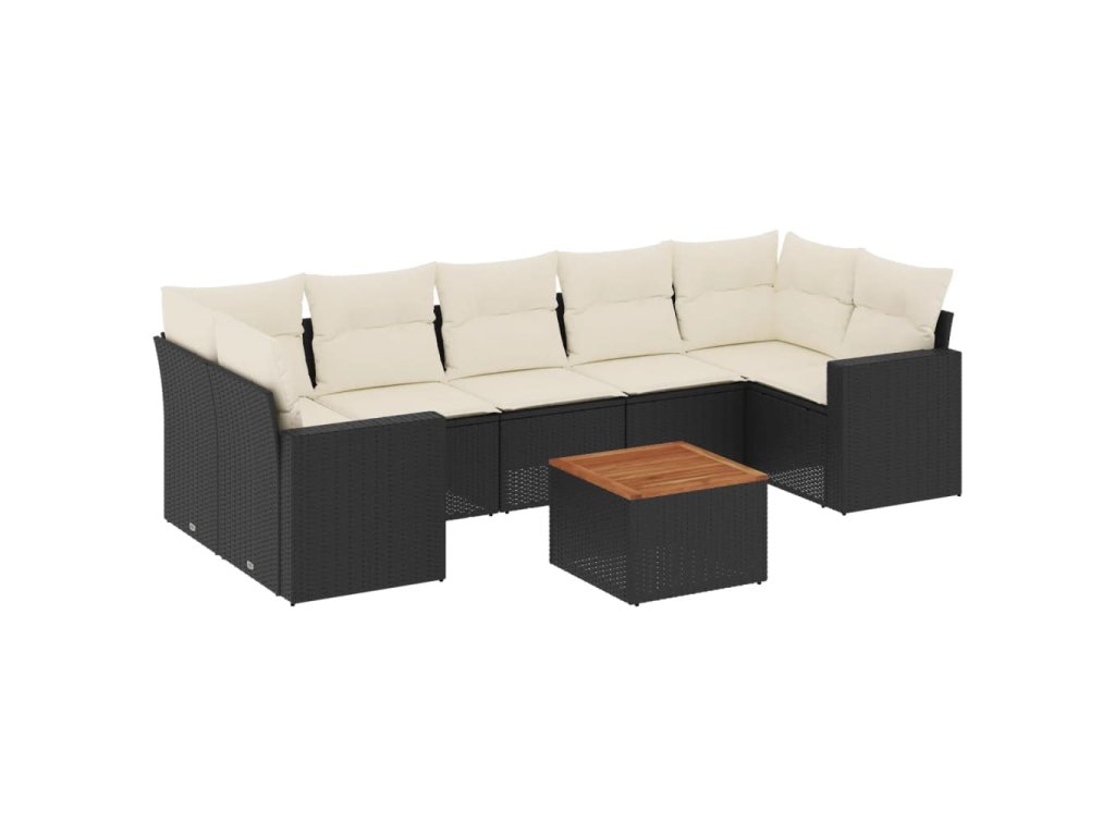 8dílná zahradní sedací souprava s poduškami černá polyratan 3224033