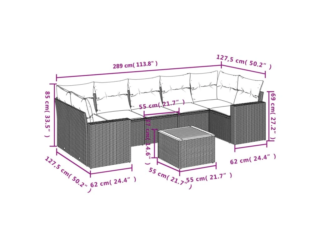 Tato zahradní sedací souprava je dokonalým doplňkem vaší zahrady, terasy nebo dvorku a poskytne vám pohodlné a příjemné místo, kde si můžete povídat s rodinou a přáteli nebo jen tak odpočívat a užívat si pobyt venku.
