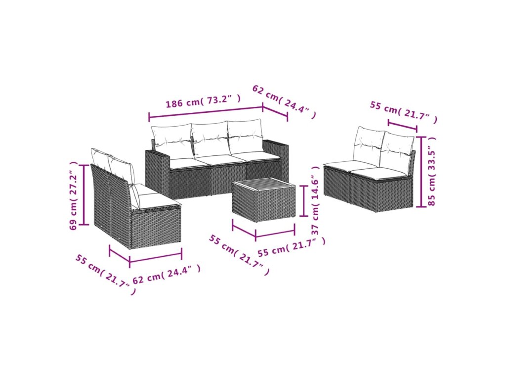 Tato zahradní sedací souprava je dokonalým doplňkem vaší zahrady, terasy nebo dvorku a poskytne vám pohodlné a příjemné místo, kde si můžete povídat s rodinou a přáteli nebo jen tak odpočívat a užívat si pobyt venku.