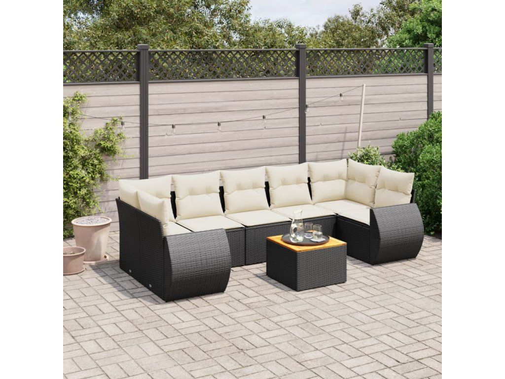 8dílná zahradní sedací souprava s poduškami černá polyratan 3224915