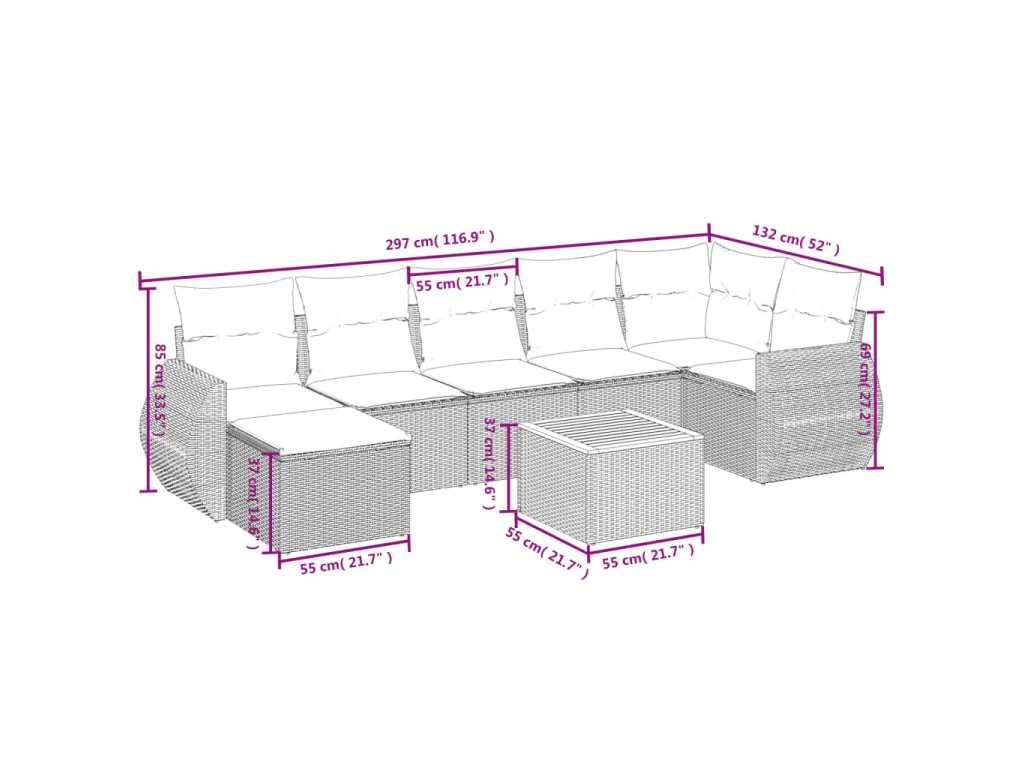 Tato zahradní sedací souprava je dokonalým doplňkem vaší zahrady, terasy nebo dvorku a poskytne vám pohodlné a příjemné místo, kde si můžete povídat s rodinou a přáteli nebo jen tak odpočívat a užívat si pobyt venku.