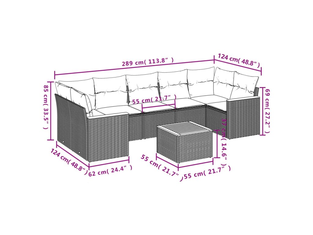 8dílná zahradní sedací souprava s poduškami černá polyratan 3225811