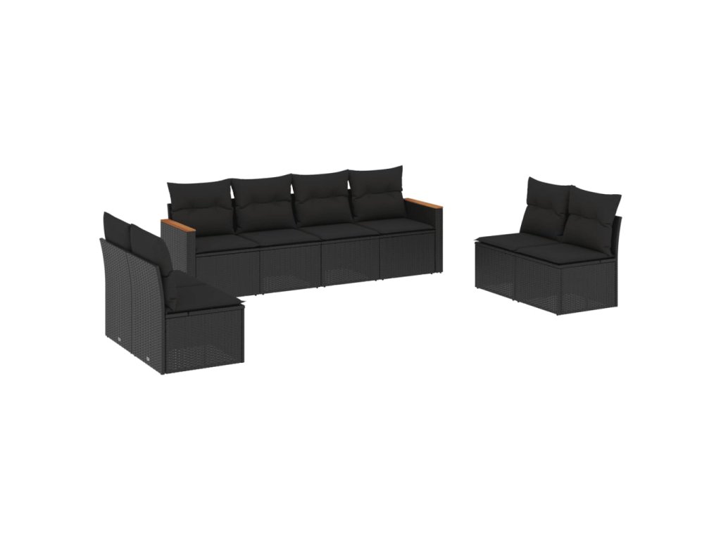 8dílná zahradní sedací souprava s poduškami černá polyratan 3225887