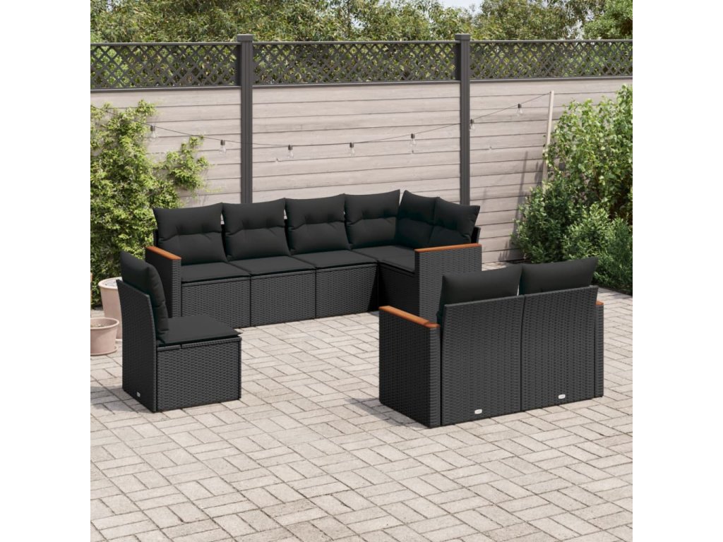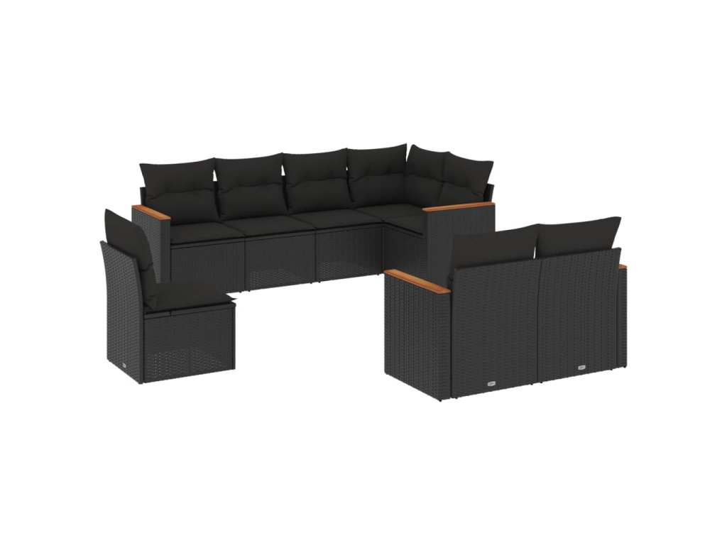 8dílná zahradní sedací souprava s poduškami černá polyratan 3226160